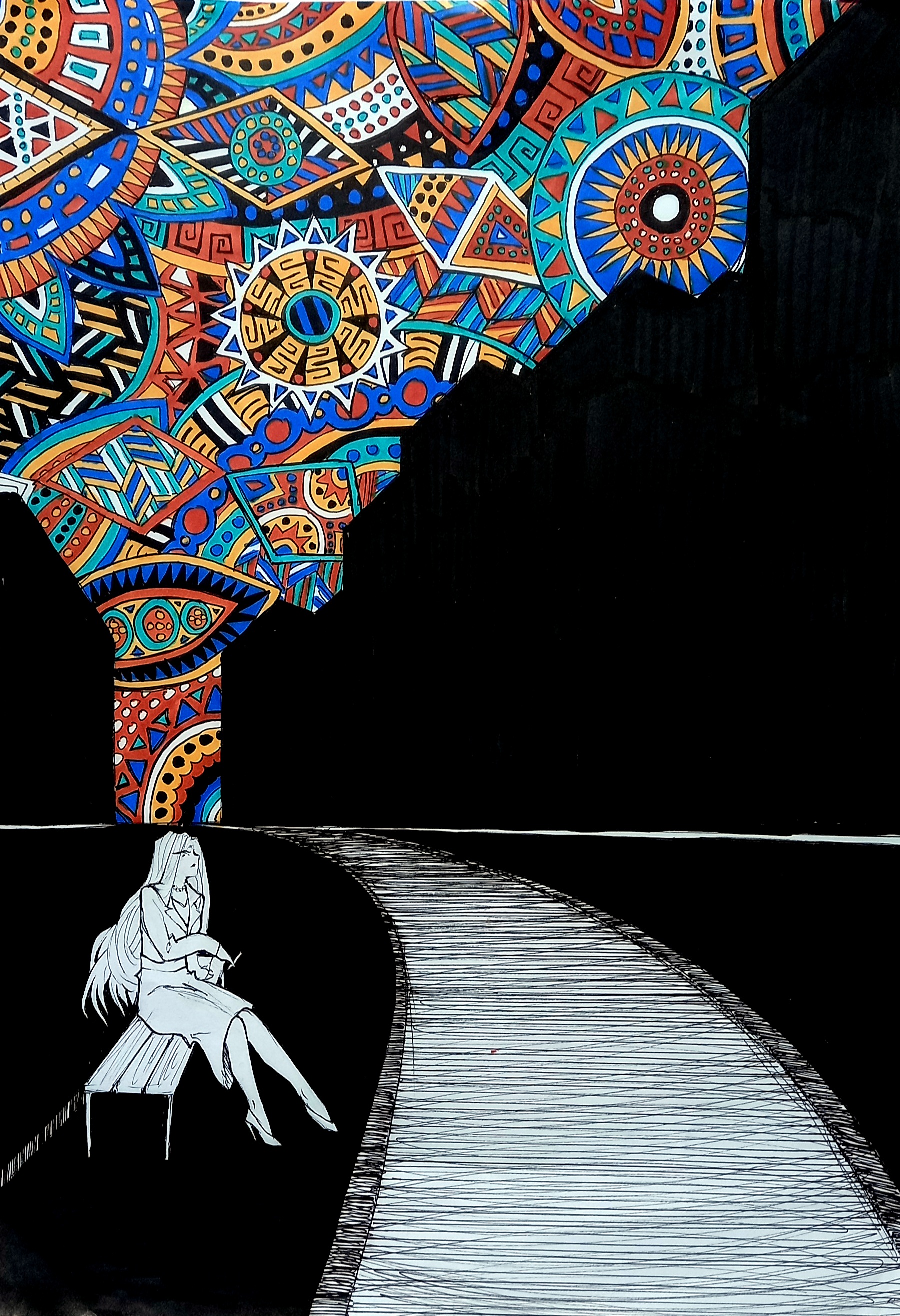 Je passe beaucoup de temps à dessiner, que ce soit en traditionnel sur du papier la plupart du temps ou parfois en digital sur tablette graphique.